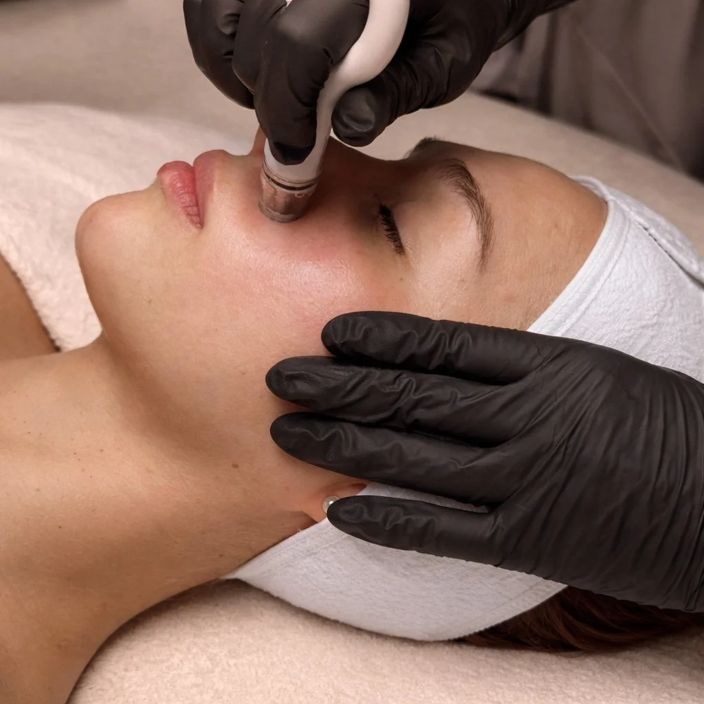 This treatment is designed for those looking for a "glass skin" effect or a solution for anti- aging, acne-prone, or dull skin, without the downtime of traditional microneedling. If you want to stimulate your collagen, improve skin texture, delivery bouncy, healthy, and glowing skin then this service is for you!